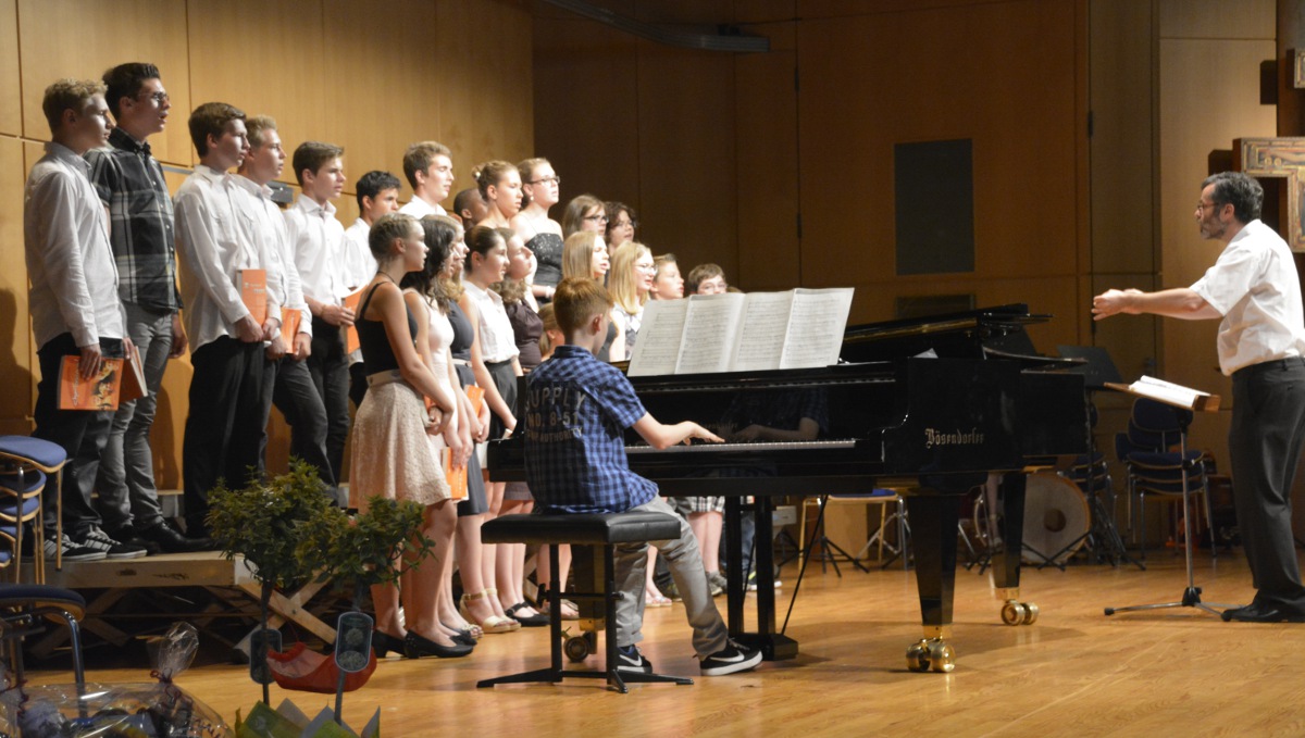 Der von Andreas Heindel geleitete „Jugendchor“, der in diesem Jahr zwar etwas kleiner, aber stimmlich sehr ausgewogen besetzt ist, sang drei Stücke („Can you feel the love tonight“, „You´ve got a friend“ und „Top oft he world“). Der Chorklang war frisch und elastisch. Mitreißend am Klavier begleitet wurde der engagiert singende Chor von Daniel W., einem Schüler aus der 6. Klasse.